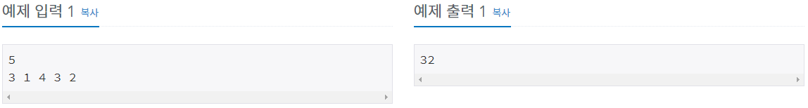 첫째 줄에 사람의 수 N(1 ≤ N ≤ 1,000)이 주어진다. 둘째 줄에는 각 사람이 돈을 인출하는데 걸리는 시간 Pi가 주어진다. (1 ≤ Pi≤ 1,000)