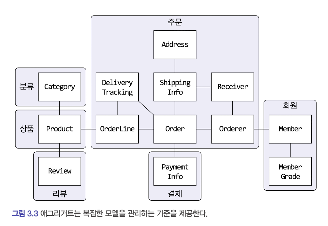 | 애그리게잇(Aggregate) | 관련된 엔티티와 값 객체의 그룹으로, 일관된 변경을 보장하기 위한 경계를 정의하고 루트 엔티티를 통해 접근 | Order (루트: Order, 구성 요소: OrderLine) |